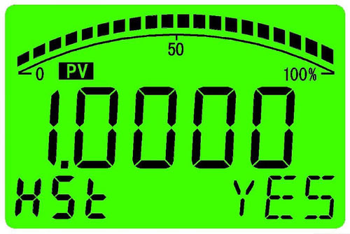 “NO” 不進(jìn)行零點(diǎn)有源遷移; “YES” 進(jìn)行零點(diǎn)有源遷移; 若30秒內(nèi)無任何按鍵操作,儀表將返回到測量模式。此功能禁止在生產(chǎn)過程中使用,適合在現(xiàn)場使用。 4.3.3滿點(diǎn)有源遷移 滿點(diǎn)有源遷移是將當(dāng)前壓力設(shè)定為變送器的滿點(diǎn)輸出,對(duì)變送器施加滿點(diǎn)壓力,長按“S”鍵5秒以上,儀表將交替顯示當(dāng)前壓力值與滿點(diǎn)輸出電流值,如右圖,菜單區(qū)顯示“HSt”,通過“S”鍵和“Z”鍵選擇需要進(jìn)行的操作,提示符區(qū)相應(yīng)顯示:
