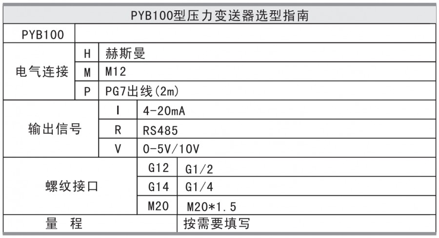 PYB100壓力變送器采用擴(kuò)散硅壓力芯體做為敏感元件,選用全數(shù)字電路,整體性能穩(wěn)定可靠,可進(jìn)行遠(yuǎn)距離信號(hào)傳輸。全不銹鋼結(jié)構(gòu),安裝方便。具有極高的抗干擾和抗沖擊能力。廣泛應(yīng)用于氣動(dòng)、液壓、供水、消防、環(huán)保、醫(yī)療等行業(yè)。