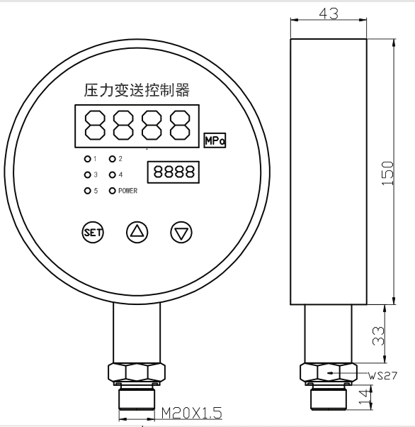 PYK150智能壓力控制器是集壓力測(cè)量、顯示、輸出、五路控制于一體的智能數(shù)字壓力測(cè)控產(chǎn)品。不銹鋼接頭、擴(kuò)散硅壓力芯體、全數(shù)字電路板組成,顯示直觀,操作簡(jiǎn)單,安全可靠,開關(guān)點(diǎn)現(xiàn)場(chǎng)設(shè)置。廣泛應(yīng)用于水電、自來水,石油、化工、機(jī)械、液壓等行業(yè),對(duì)流體介質(zhì)的壓力進(jìn)行測(cè)量和控制,并可遠(yuǎn)傳輸出(4-20mA)及RS485組網(wǎng)。