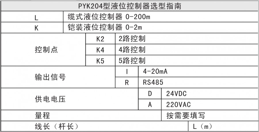 PYK204等系列液位控制器是集液位測量、顯示、輸出、控制于一體的智能數(shù)字液位控制產(chǎn)品。適用于非密封容器的液位測量,并可遠傳輸出4-20mA及RS485組網(wǎng)。