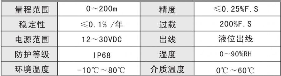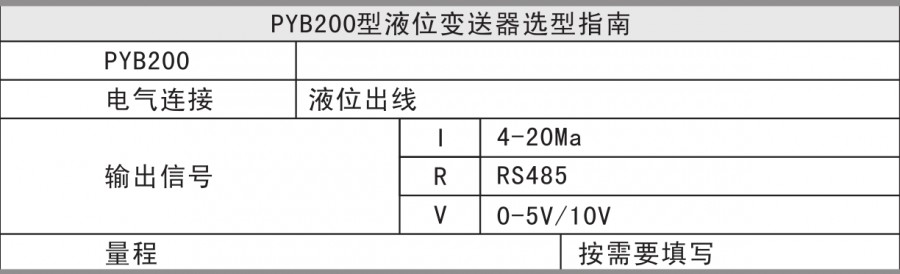 PYB200投入式液位變送器適用于石油化工、冶金、電力、制藥、供排水、環(huán)保等系統(tǒng)和行業(yè)的各種介質的液位測量。精巧的結構、簡單的調教和靈活的安裝方式,為用戶輕松地使用提供了方便。
